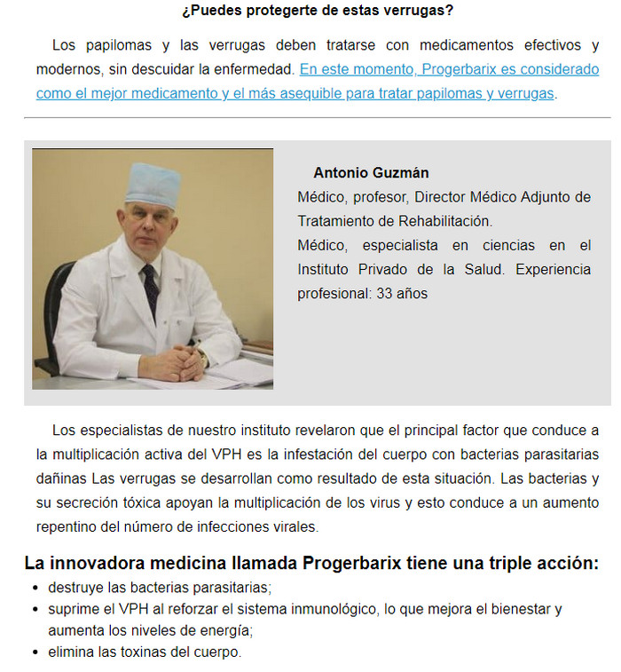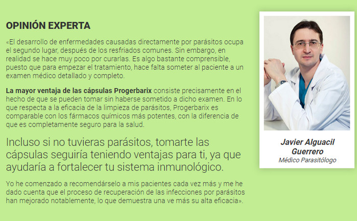«Un buen producto. ¡Me ayudó a deshacerme de los gusanos! Empecé a comer menos y a sentirme lleno con menos cantidad de comida, mi salud mejoró e incluso mi potencia sexual. Lo que más me ha gustado es que el efecto de las cápsulas se empieza a notar a los pocos días. Ahora siempre estoy de buen humor y rindo muy bien en el trabajo, como cuando era joven. En general, siento mejoría en todo mi organismo. Ya he terminado un ciclo de tratamiento y voy a comprar más para tomarlo de vez en cuando de modo preventivo.»